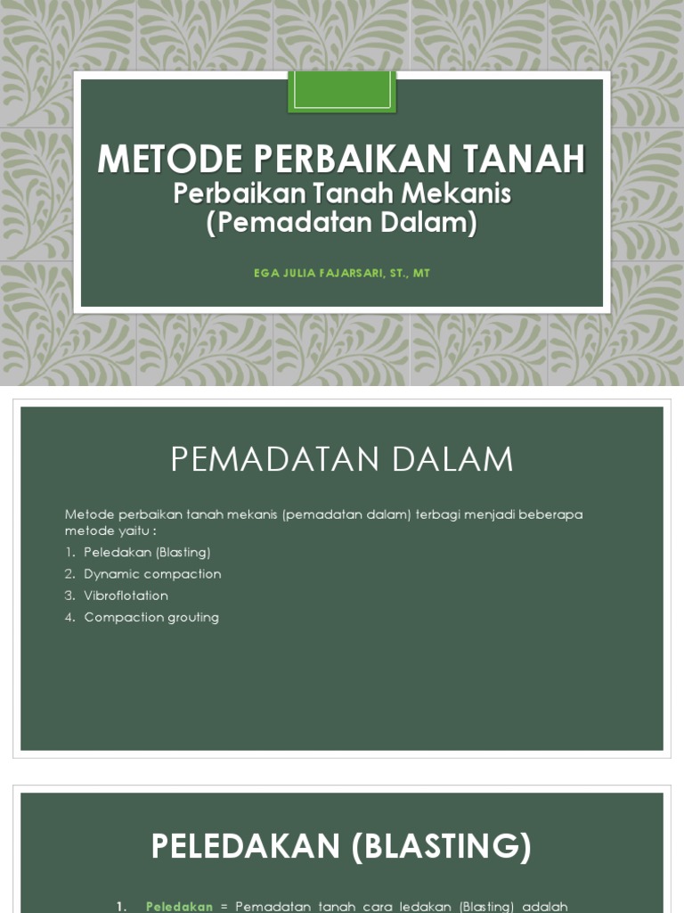 Metode perbaikan tanah mekanis (pemadatan dalam) terbagi menjadi beberapa