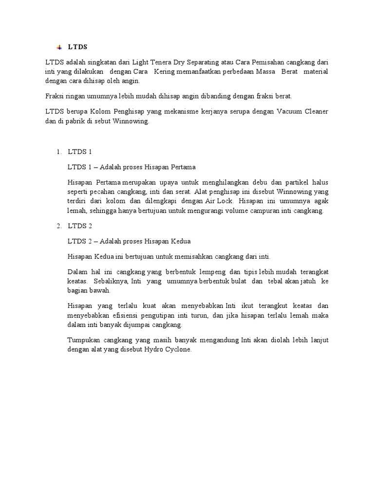 LTDS adalah singkatan dari Light Tenera Dry Separating atau Cara Pemisahan cangkang dari