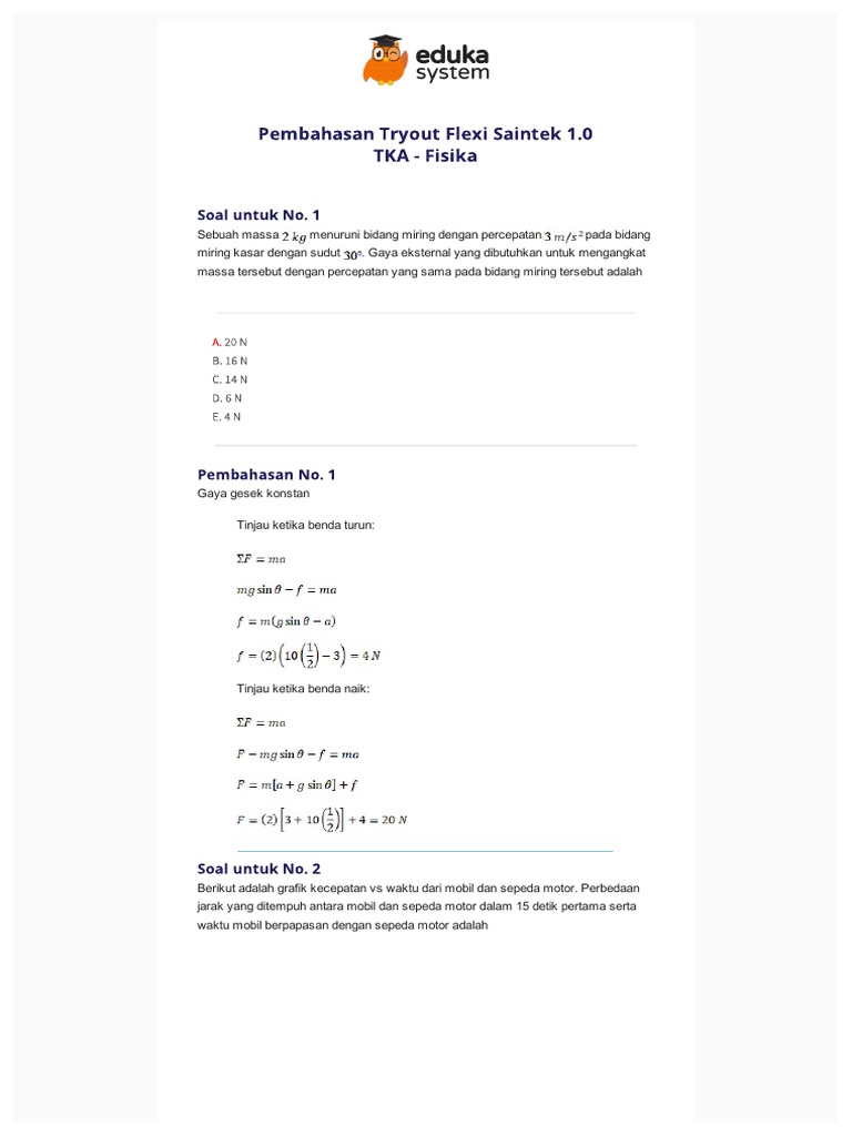 massa tersebut dengan percepatan yang sama pada bidang miring tersebut adalah
