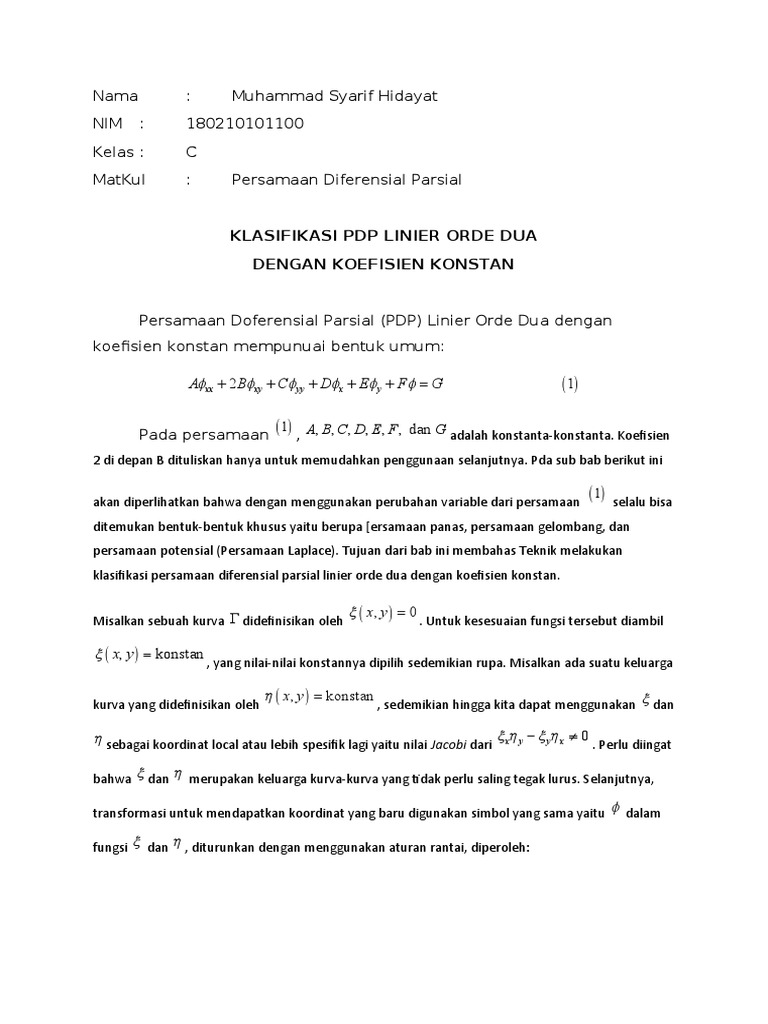 Persamaan Doferensial Parsial (PDP) Linier Orde Dua dengan