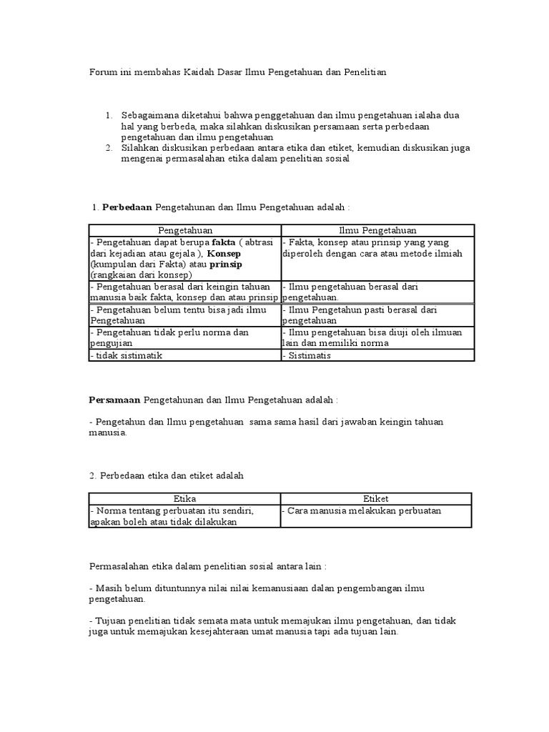 Forum ini membahas Kaidah Dasar Ilmu Pengetahuan dan Penelitian