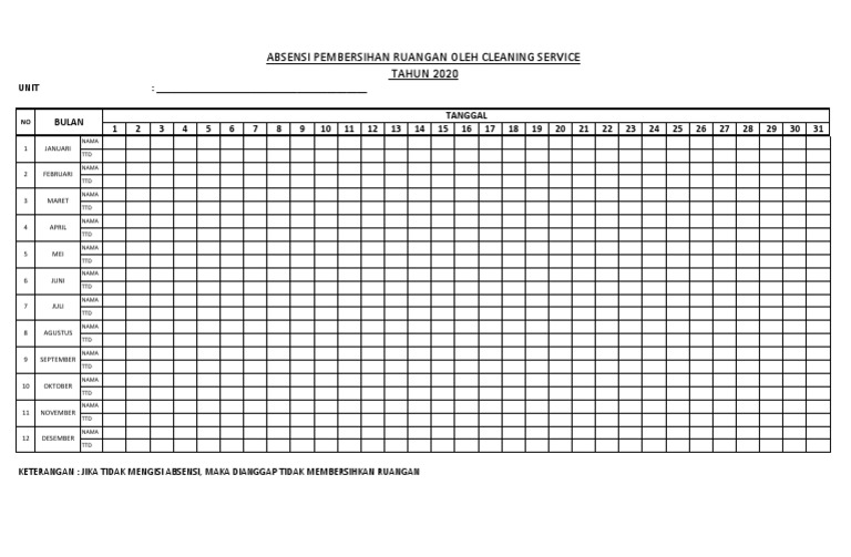 KETERANGAN : JIKA TIDAK MENGISI ABSENSI, MAKA DIANGGAP TIDAK MEMBERSIHKAN RUANGAN