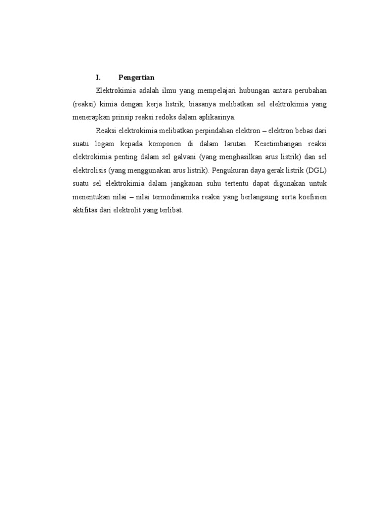Reaksi elektrokimia melibatkan perpindahan elektron – elektron bebas dari