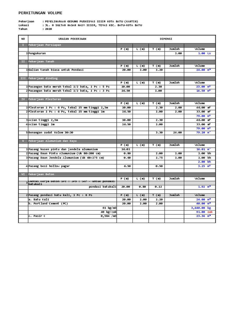 b. Portland Cement (PC) 91.00 zak Rp 55,000.00 Rp 5,005,000.00