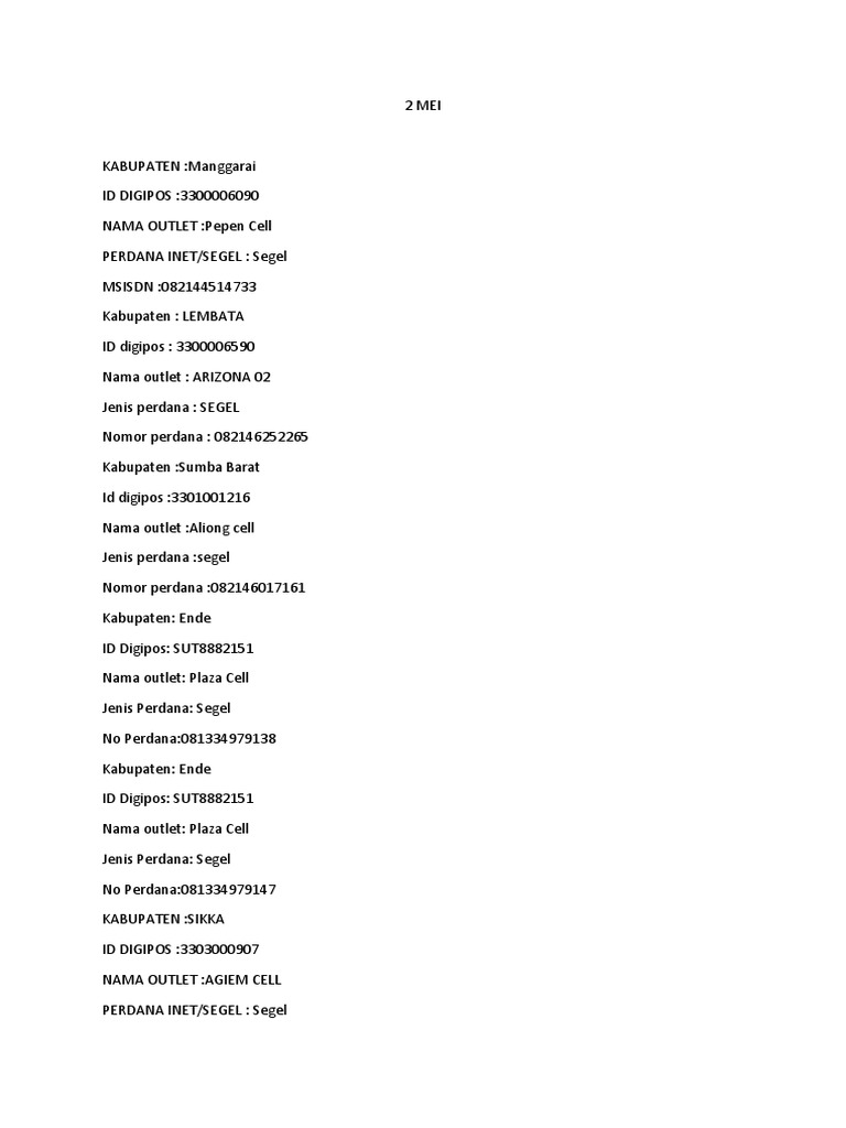 - Nama Outlet : OD Dian Arizona Cell