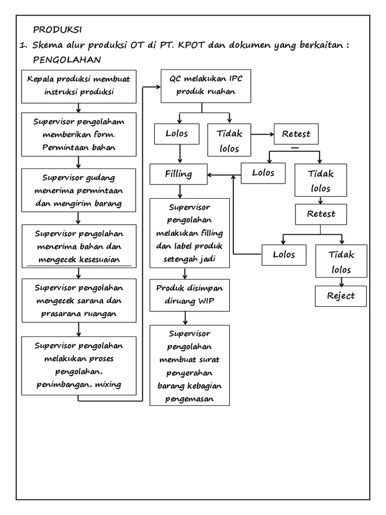1. Skema alur produksi OT di PT. KPOT dan dokumen yang berkaitan :