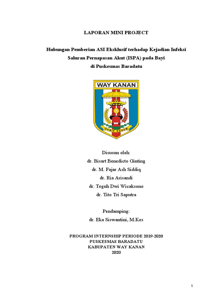 tidak diberikan ASI. Didapatkan kejadian ISPA pada bayi di Puskesmas Baradatu,