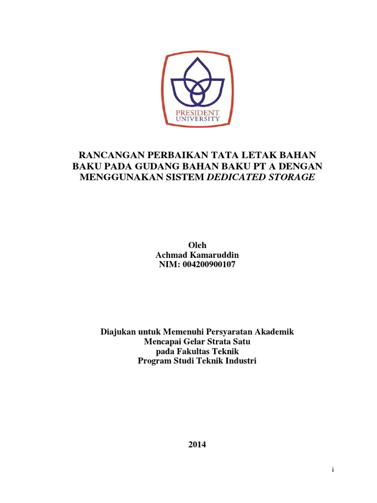 Rancangan Perbaikan Tata Letak Bahan Baku Pada Gudang Bahan Baku PT A Dengan Menggunakan Sistem Dedicated Storage
