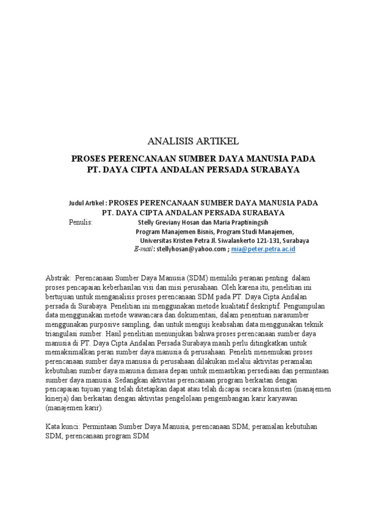 Judul Artikel : PROSES PERENCANAAN SUMBER DAYA MANUSIA PADA