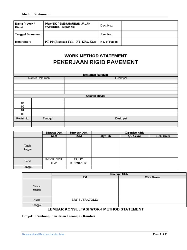 Metoda Pelaksanaan dan urutan pekerjaan yang telah ditentukan serta tetap berpegang