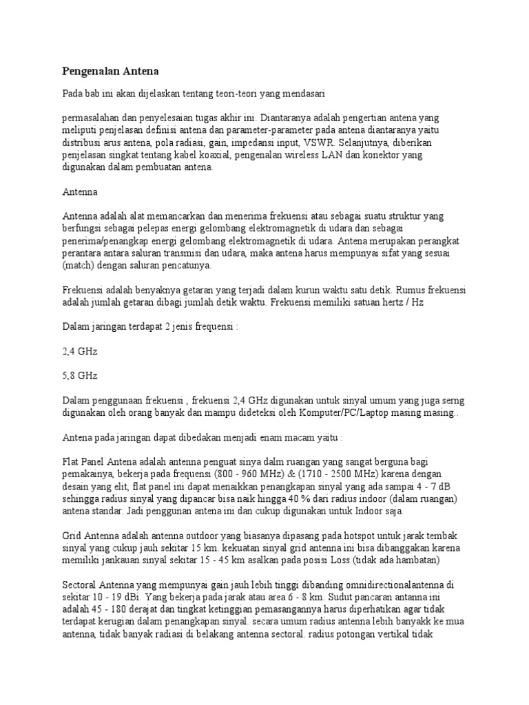 permasalahan dan penyelesaian tugas akhir ini. Diantaranya adalah pengertian antena yang
