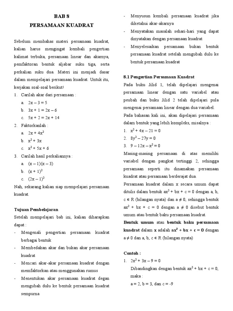 2 persamaan ax2 + bx + c = 0 dapat diselesaikan