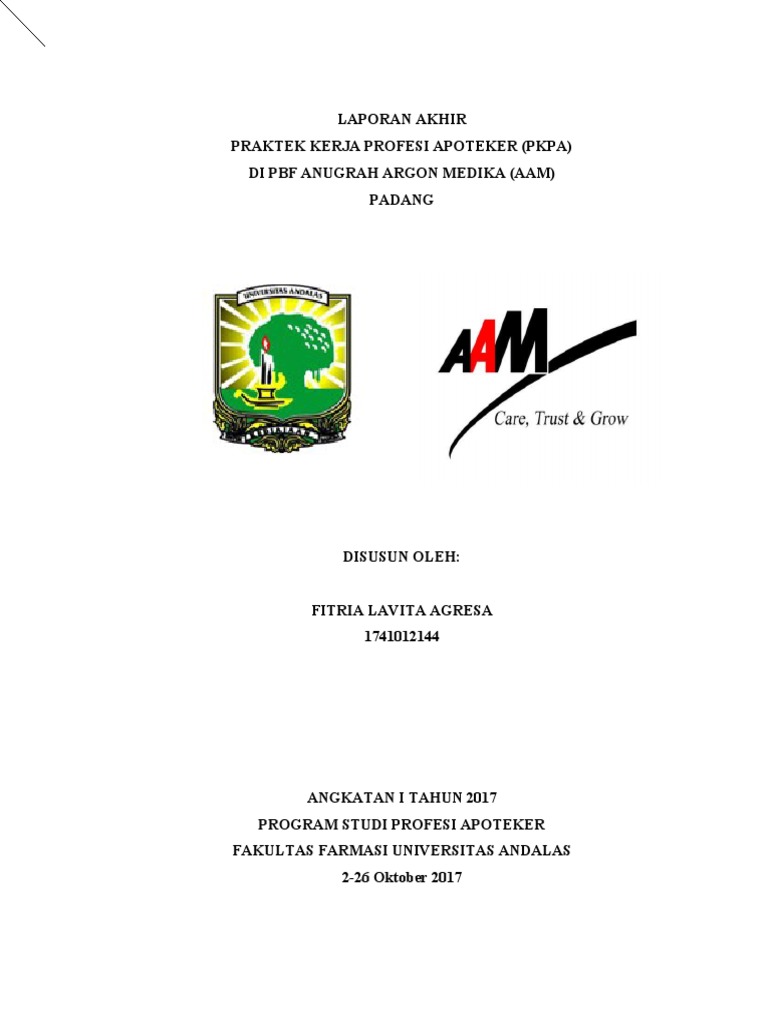 Kerja Profesi Apoteker (PKPA) di PBF Anugrah Argon Medika (AAM) Padang.