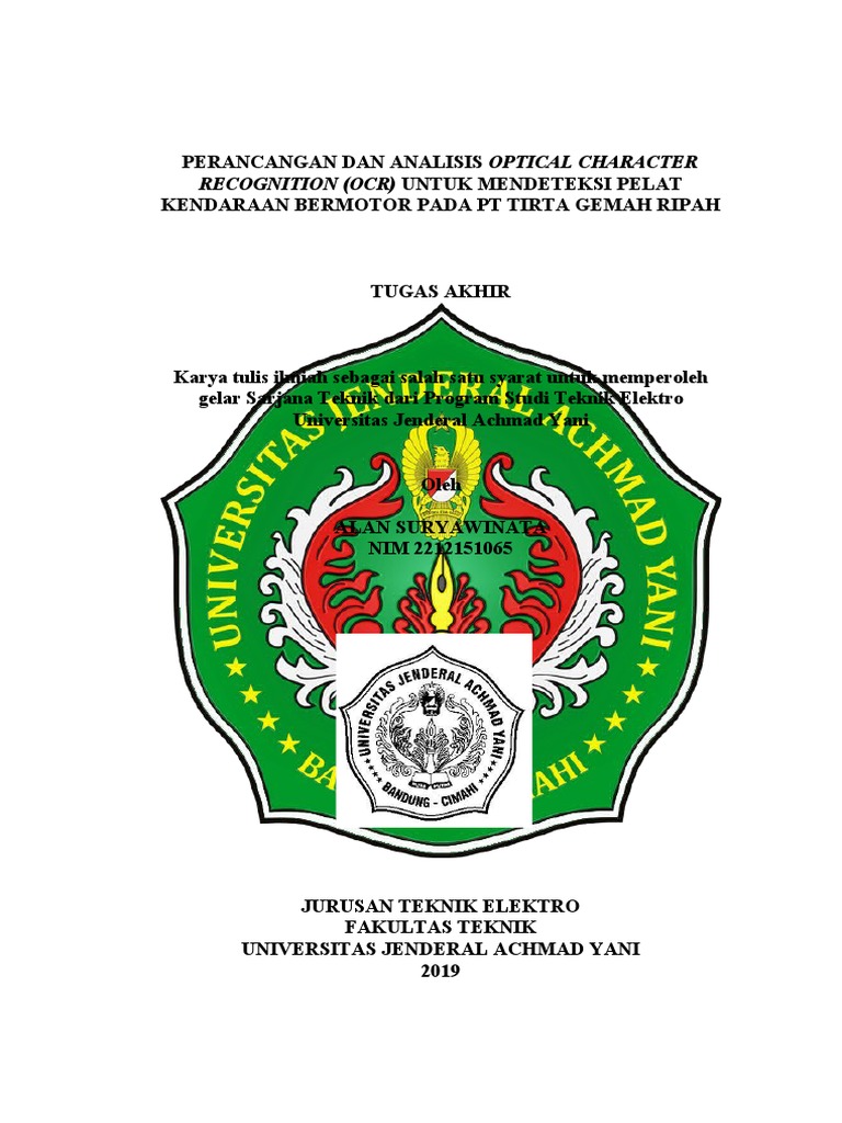 Universitas Jendral Ahmad Yani Cimahi. Selain itu penulis juga dapat mencoba