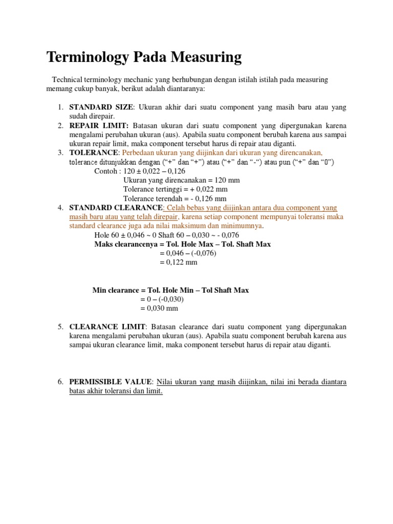 Technical terminology mechanic yang berhubungan dengan istilah istilah pada measuring