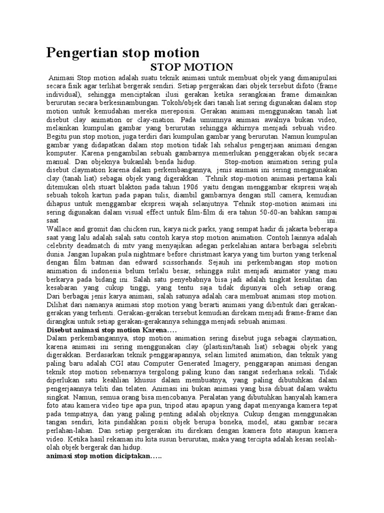 Dilihat dari namanya animasi stop motion yang berarti animasi yang dibentuk dari gerakan-