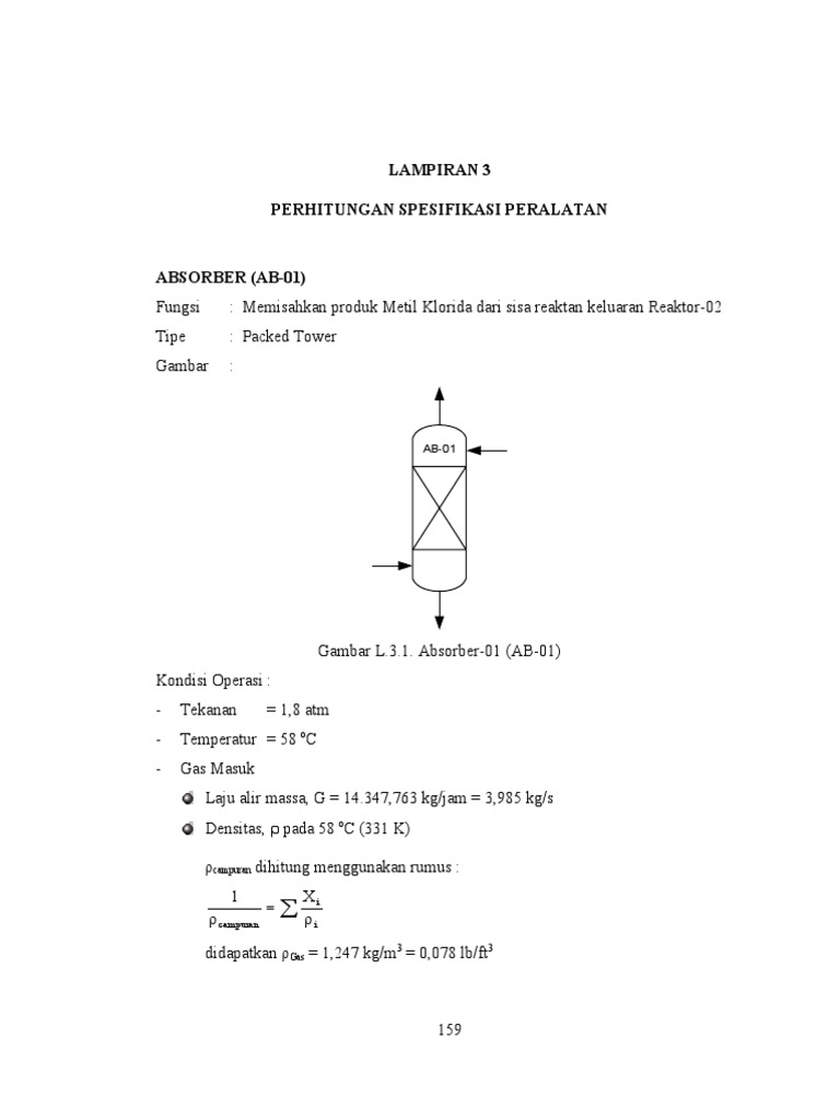 Fungsi : Memisahkan produk Metil Klorida dari sisa reaktan keluaran Reaktor-02