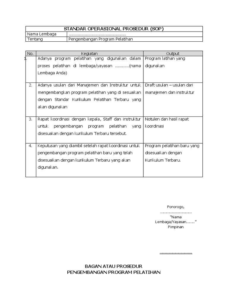 proses pelatihan di lembaga/yayasan …………(nama digunakan