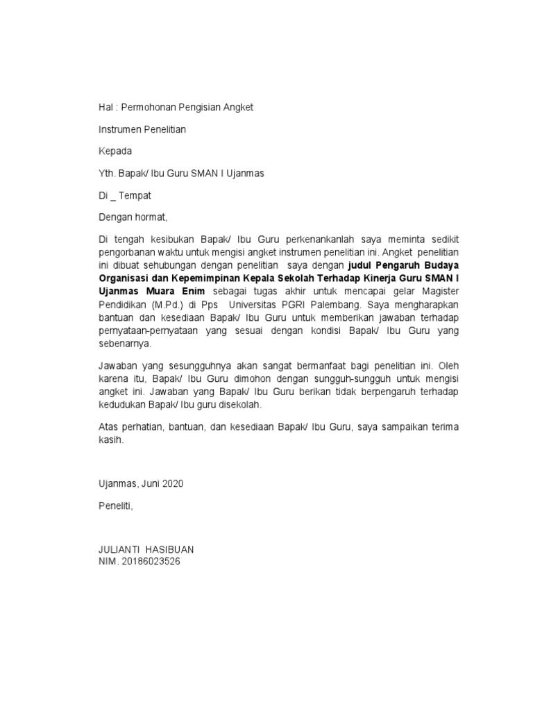 bantuan dan kesediaan Bapak/ Ibu Guru untuk memberikan jawaban terhadap