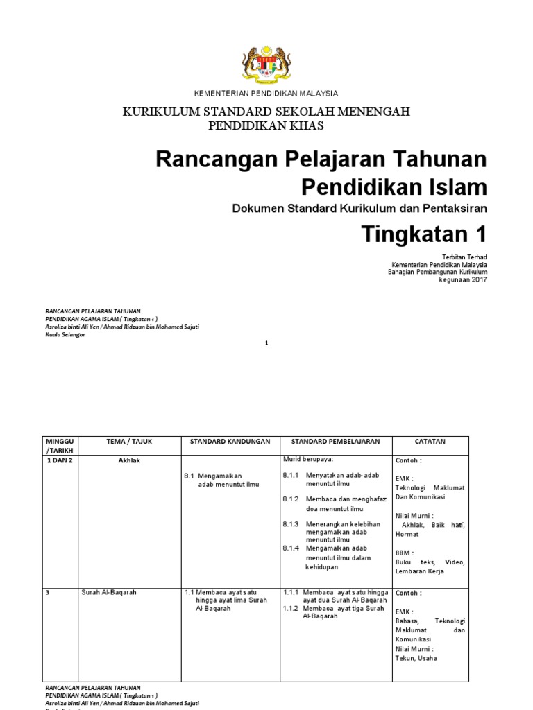 PENDIDIKAN AGAMA ISLAM ( Tingkatan 1 )