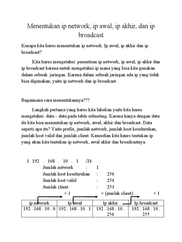 Kita harus mengetahui penentuan ip network, ip awal, ip akhir dan