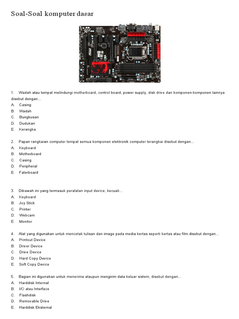 44. Perangkat output yang menghasilkan informasi disebut…..