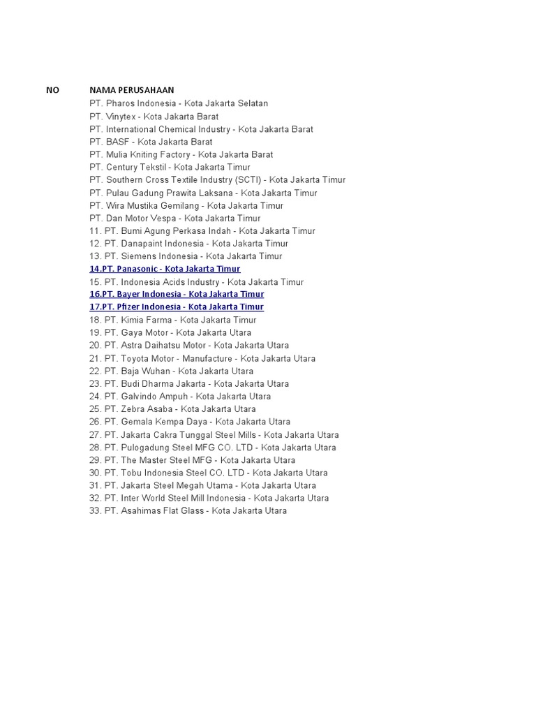 NO NAMA PERUSAHAAN
