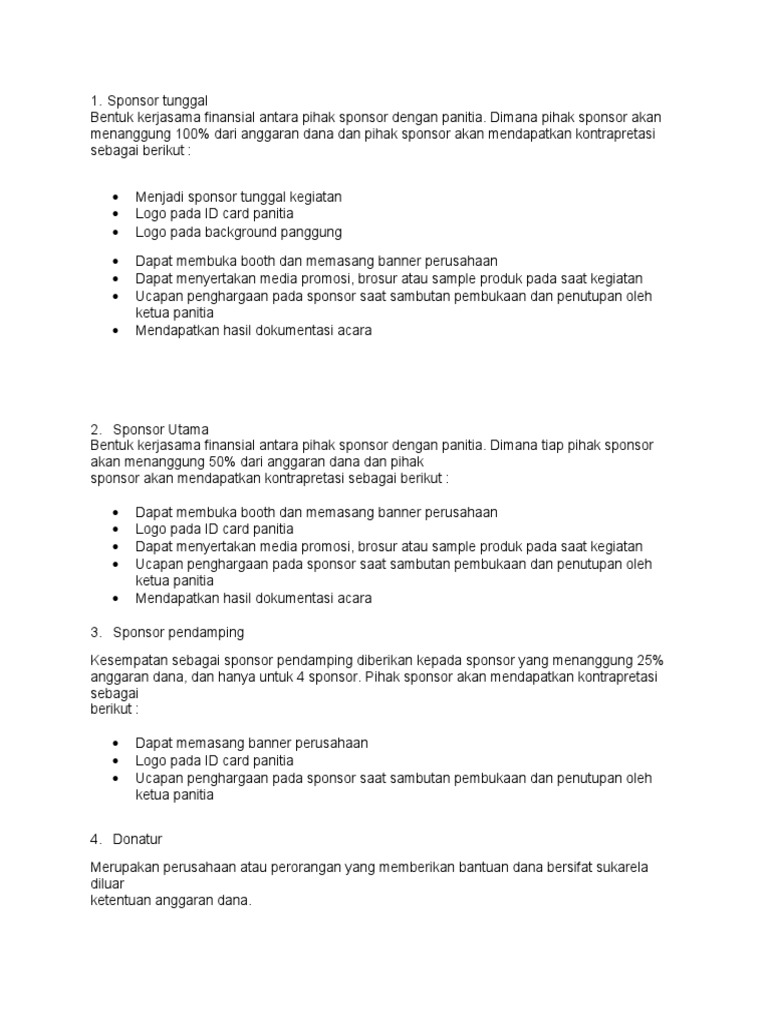 2. Batas kesediaan menjadi sponsor maksimal 1 minggu setelah proposal ini diterima.