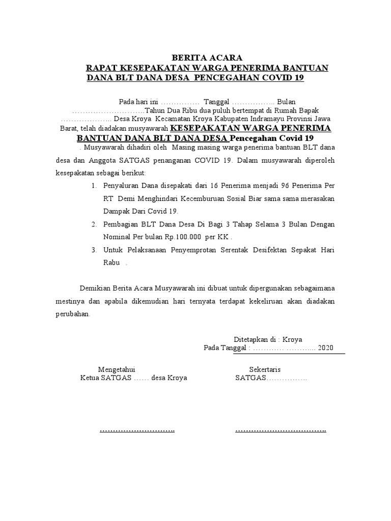 Barat, telah diadakan musyawarah KESEPAKATAN WARGA PENERIMA