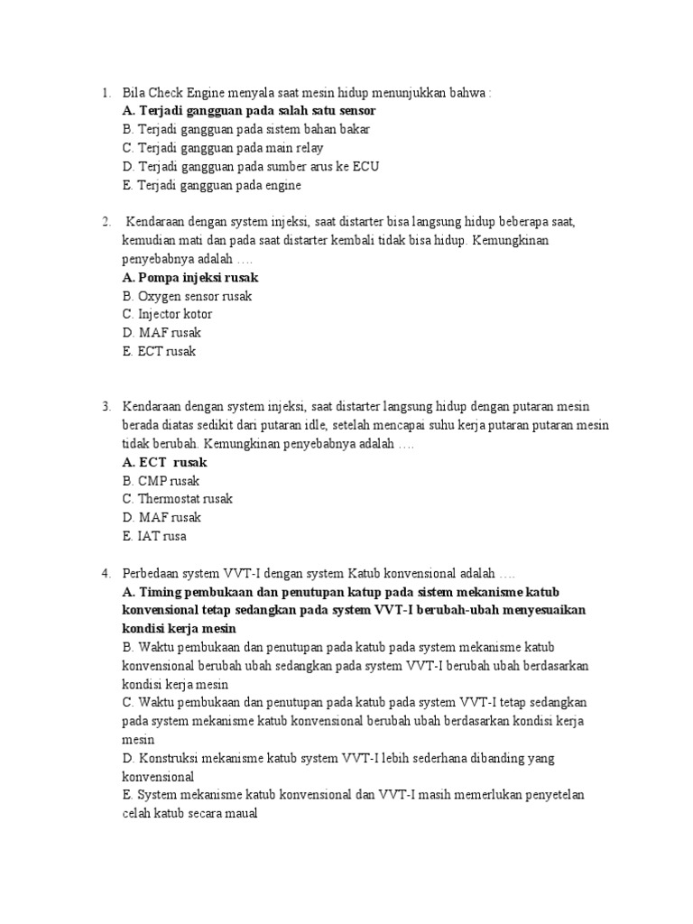 3. Kendaraan dengan system injeksi, saat distarter langsung hidup dengan putaran mesin