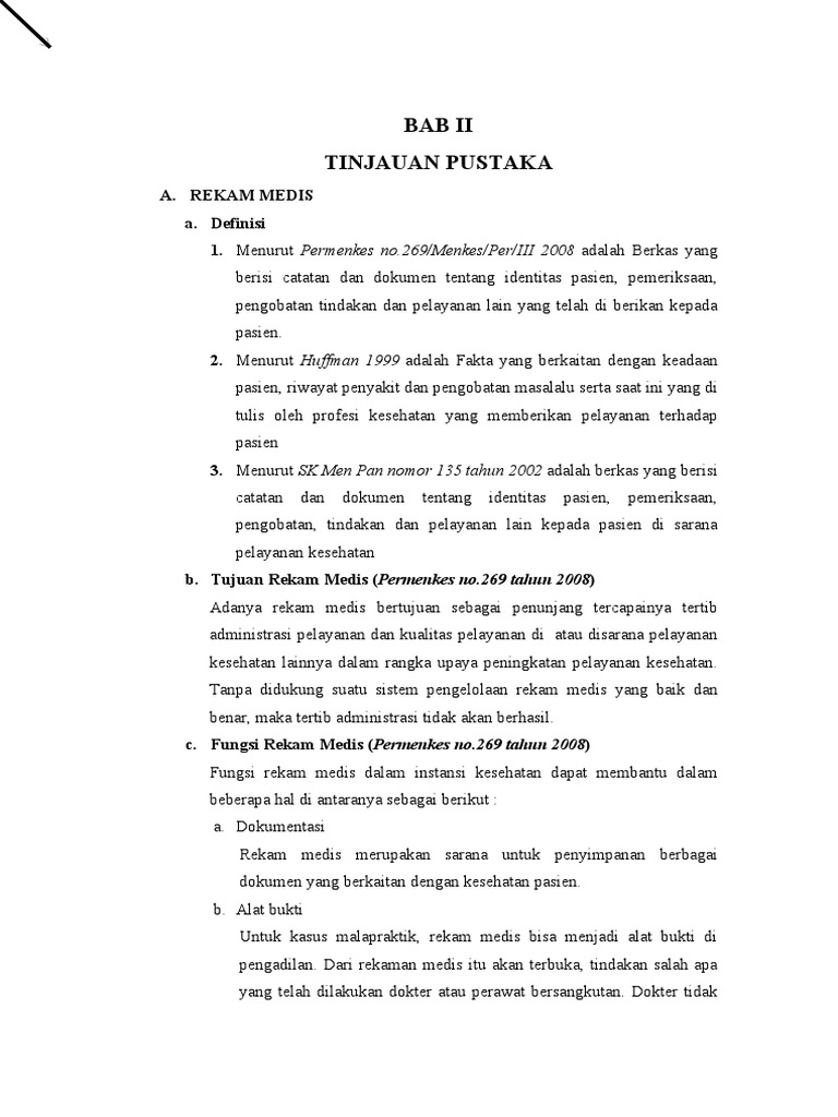 b. Tujuan Rekam Medis (Permenkes no.269 tahun 2008)