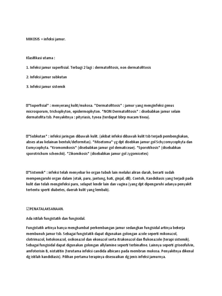 dg istilah kandidiasis). Pilihan pertama terapinya disesuaikan dg jenis infeksi jamurnya.