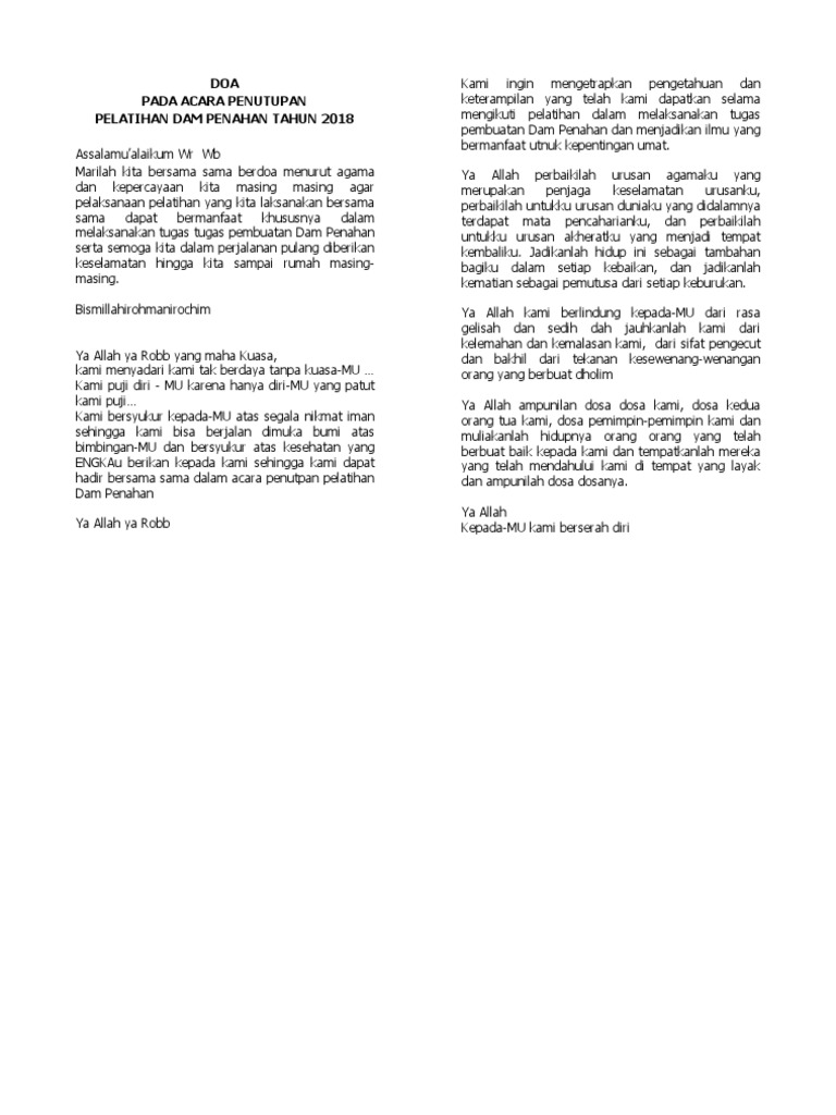 kami puji… Ya Allah ampunilan dosa dosa kami, dosa kedua