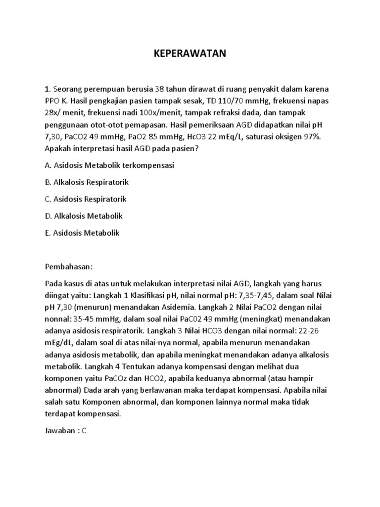 nonnal: 35-45 mmHg, dalam soal nilai PaC02 49 mmHg (meningkat) menandakan