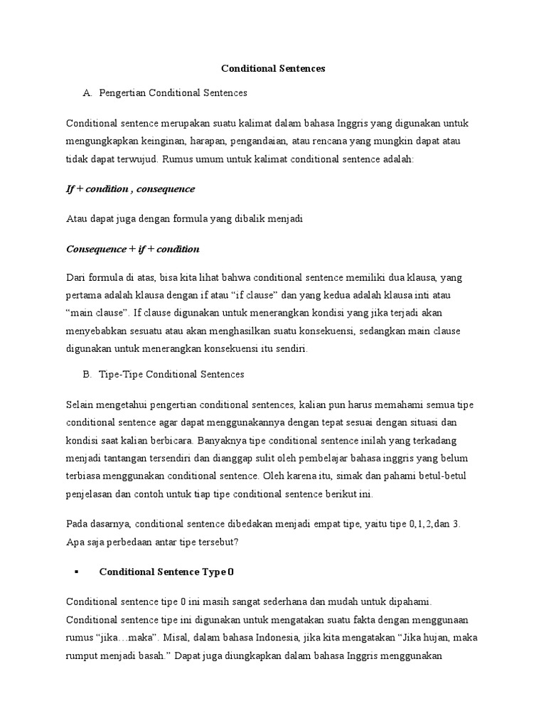 Conditional sentence merupakan suatu kalimat dalam bahasa Inggris yang digunakan untuk