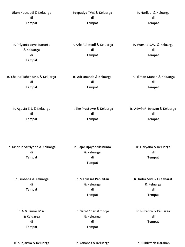 Ir. Indra Miduk Hutabarat Ir. Sarjulianto & Keluarga Ir. Hardjito & Keluarga