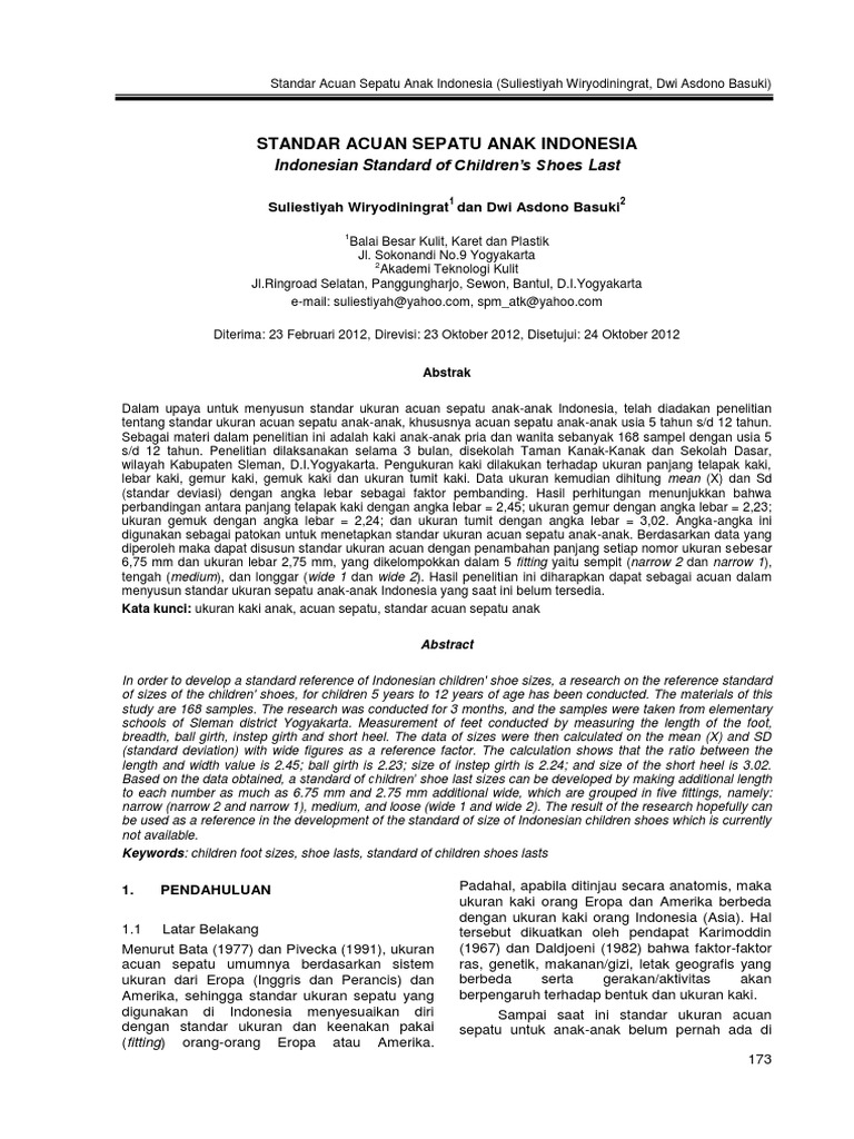 Kata kunci: ukuran kaki anak, acuan sepatu, standar acuan sepatu anak