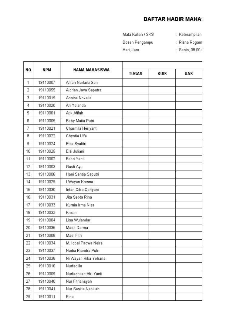 Mata Kuliah / SKS : Statistik Deskriptif/ 2 sks