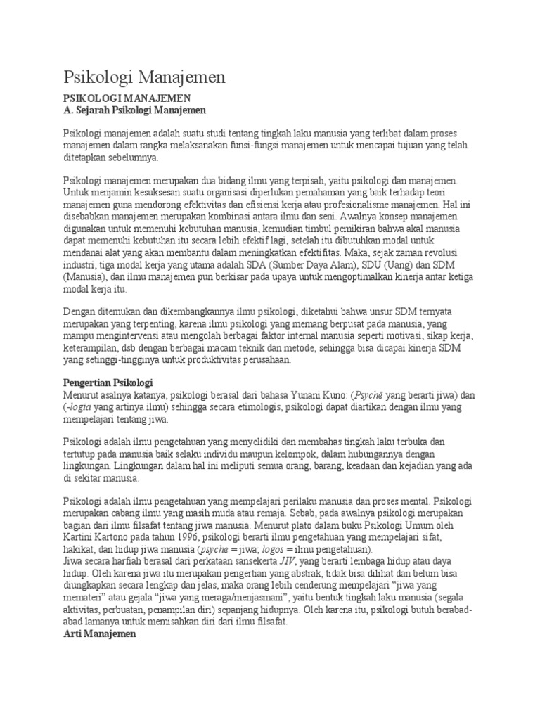 Psikologi manajemen merupakan dua bidang ilmu yang terpisah, yaitu psikologi dan manajemen.
