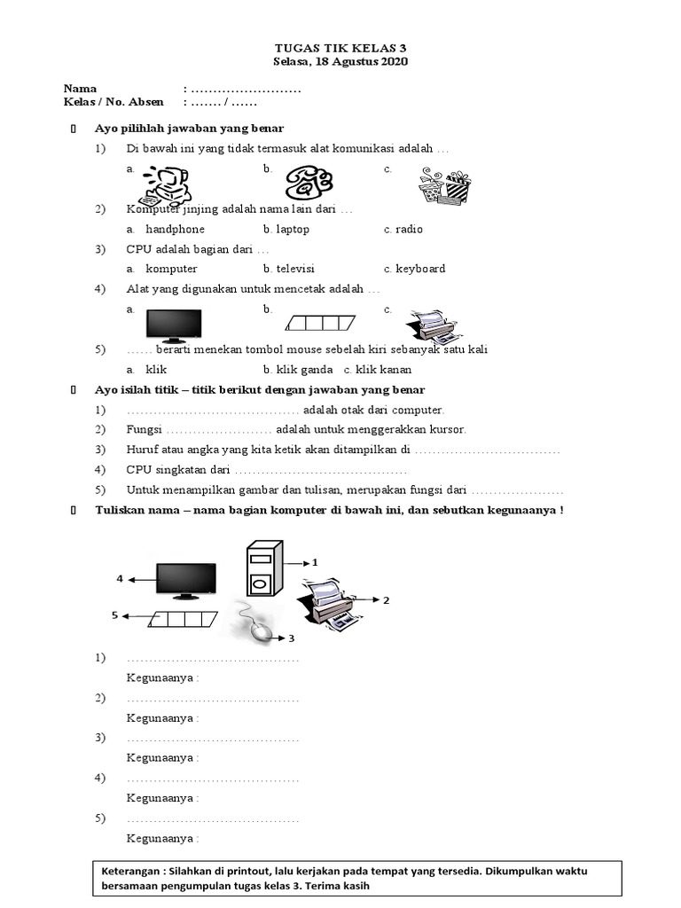 Keterangan : Silahkan di printout, lalu kerjakan pada tempat yang tersedia. Dikumpulkan waktu
