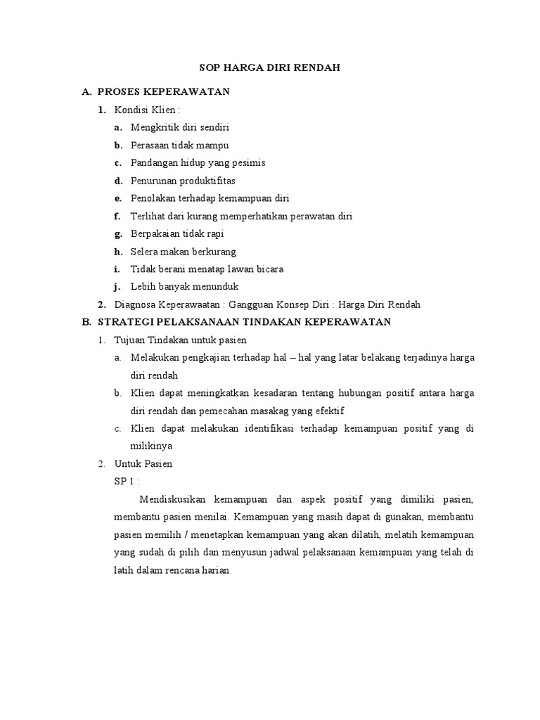SOP HARGA DIRI RENDAH