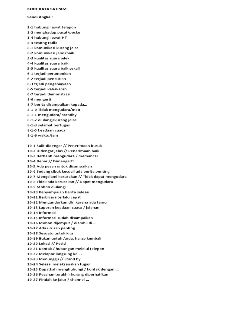 KODE KATA SATPAM