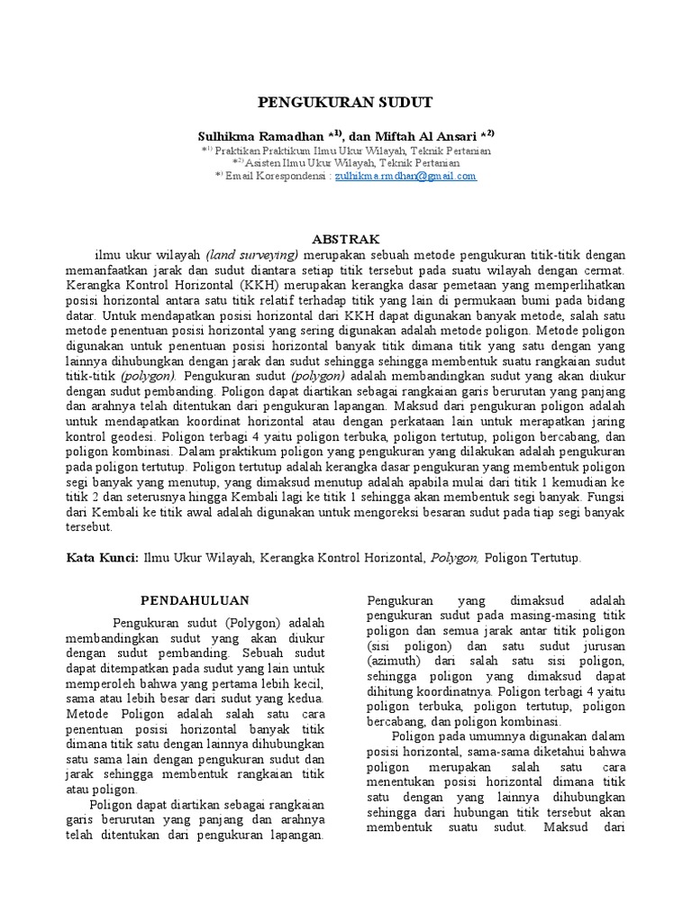 Kata Kunci: Ilmu Ukur Wilayah, Kerangka Kontrol Horizontal, Polygon, Poligon Tertutup.