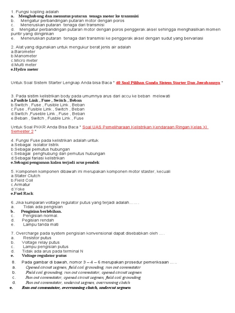 Untuk Soal Sistem Starter Lengkap Anda bisa Baca " 40 Soal Pilihan Ganda Sistem Starter Dan Jawabannya "