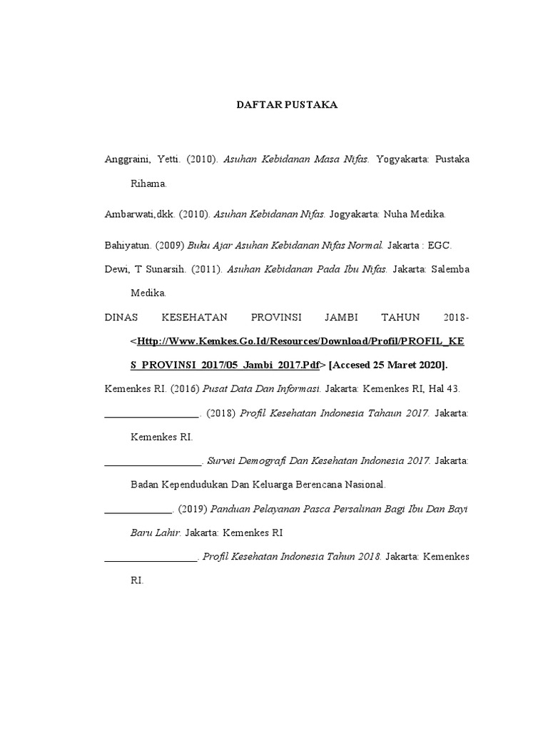 Anggraini, Yetti. (2010). Asuhan Kebidanan Masa Nifas. Yogyakarta: Pustaka