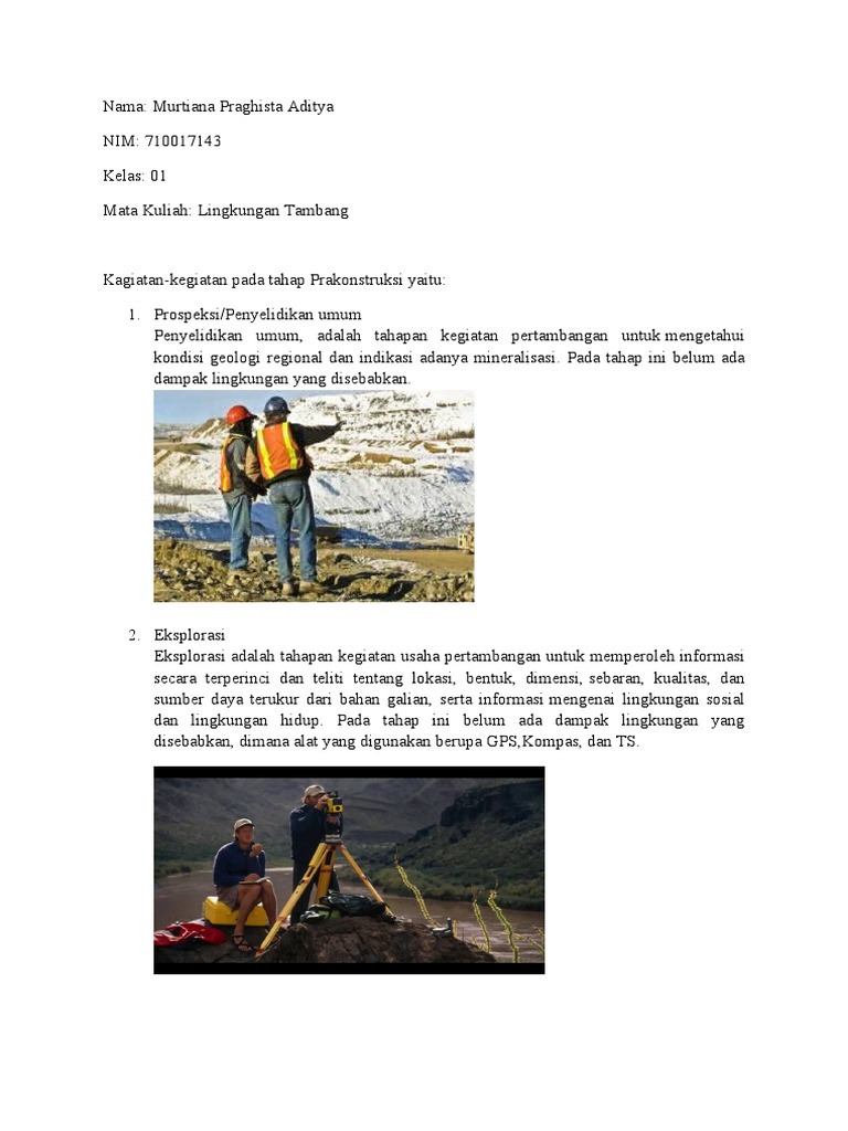 usaha pertambangan. Adapun dampak lingkungan yang disebabkan oleh kegiatan