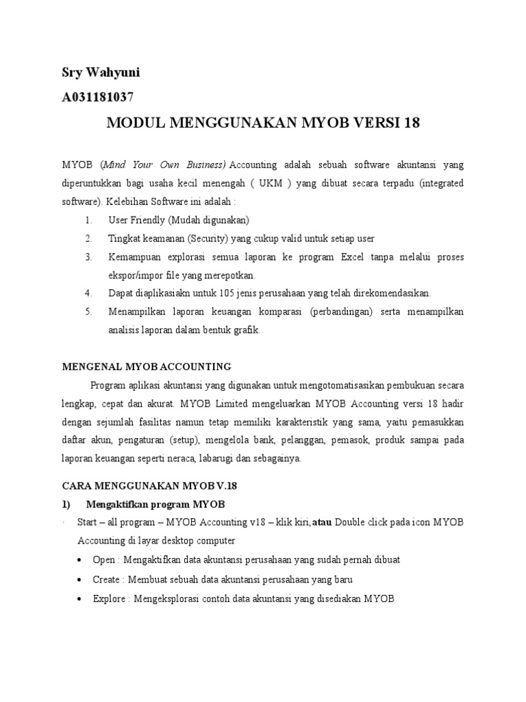 MODUL MENGGUNAKAN MYOB VERSI 18