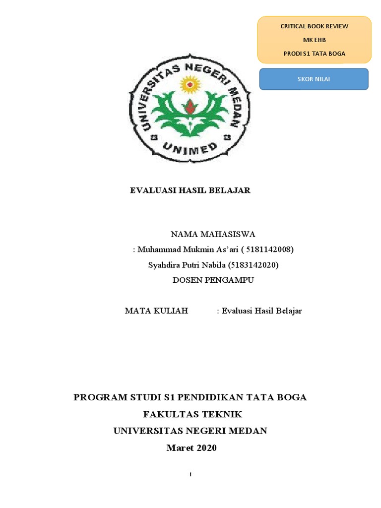 kuliah Evaluasi hasil belajar .kami berharap Critical Book Report ini dapat berguna