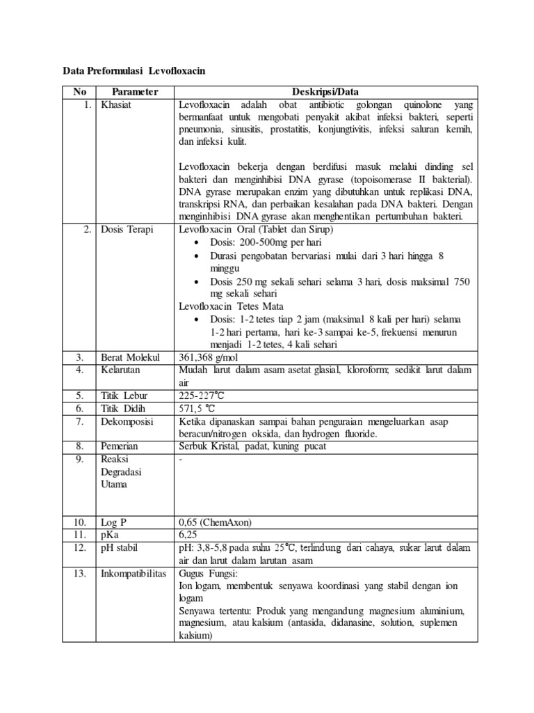 sehingga khasiat levofloxacin juga mungkin akan berubah. Inkompatibilitas dengan senyawa