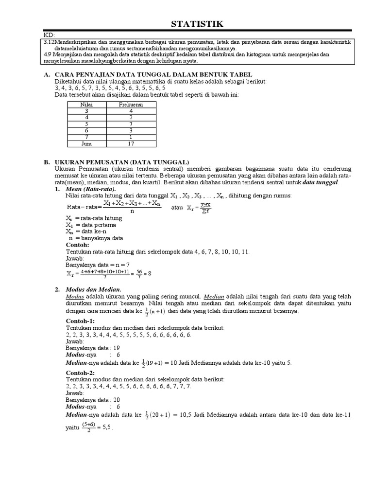 3.12Mendeskripsikan dan menggunakan berbagai ukuran pemusatan, letak dan penyebaran data sesuai dengan karakteristik